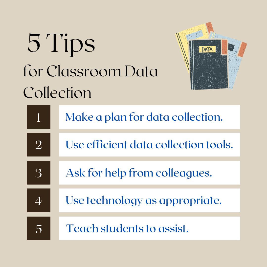 4.Use technology as appropriate. Technology tools can simply your classroom data collection. Consider using smartphone applications, Google Forms, and QR codes.